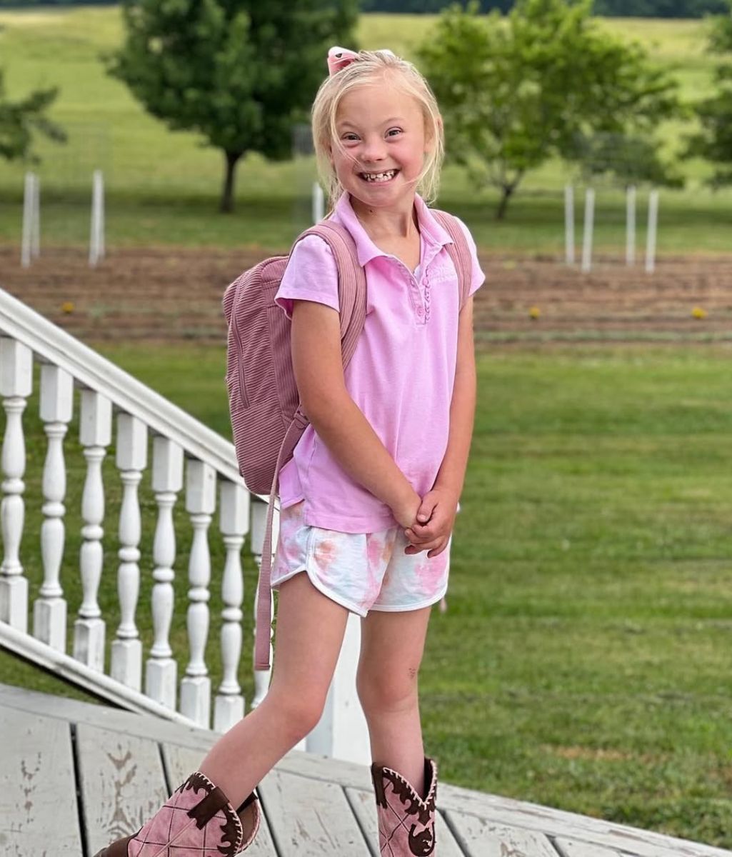 STANDING IN THE SUNSHINE — INDY’S SMILE IS PURE HEAVEN ON EARTH Today our little girl stood in front of our farmhouse in her favorite pink t-shirt and boots, that tiny matching bag slung over her shoulder, beaming with the brightest, purest smile you’ve ever seen. It stopped me in my tracks… because that smile is her mama’s smile, shining through her like sunlight breaking after the longest storm. My heart can hardly hold it — the miracle of watching Indy grow so beautifully, inside and out, after everything we’ve walked through. God’s grace has carried us here, and every single day I thank Him for this gift.